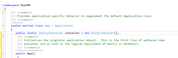 I could see my Windows 8.1 Project building fine but not my Windows Phone project. This was because, as the Win8.1 builds, it pulls in the shared files from the new Shared area and all the references to “App.Container” are present in its App.Xaml.Cs.